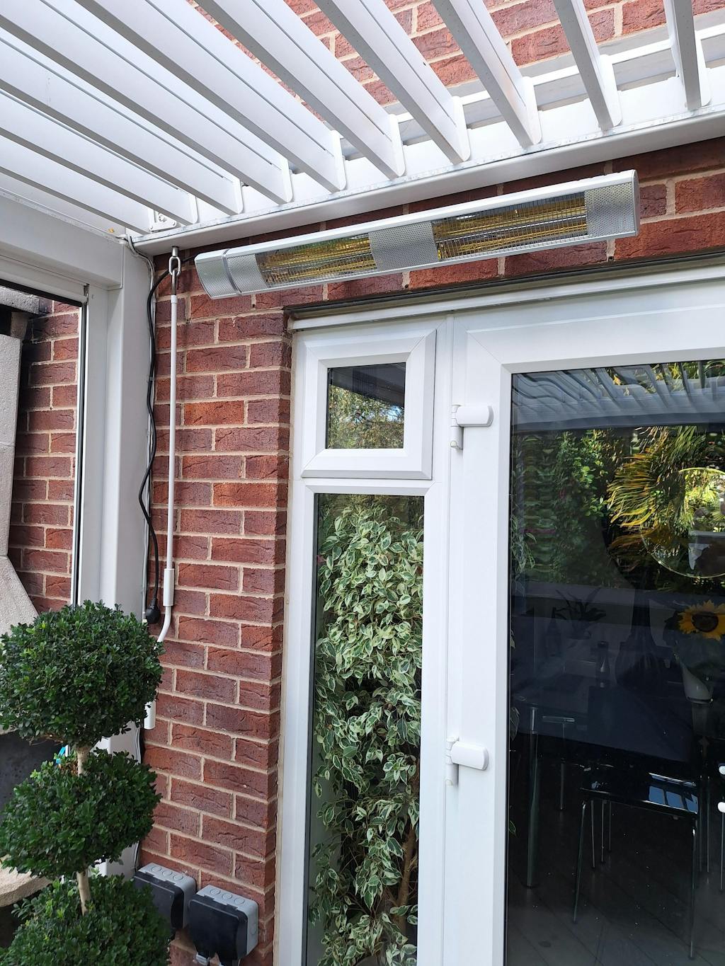 The KMH-30R9 is IP65 rated, the highest rating on the market for an Infrared heater. IP65 means that this heater is "dust-tight and protected against low pressure jets of water from any direction". This means that this heater can be left outside but must be undercover. You can see an example of this in the pictures below.
